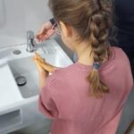 An einer Station lernten die Kinder die richtige Händehygiene kennen. Mithilfe einer gelben Seife, die die Hände sichtbar einfärbte, wurde deutlich, wie gründlich Hände gewaschen werden müssen, um Keime vollständig zu entfernen. Eine weitere Bewegungsstation forderte die Kinder beim Rückwärtslaufen heraus und schulte dabei Koordination, Gleichgewicht und Körperwahrnehmung.